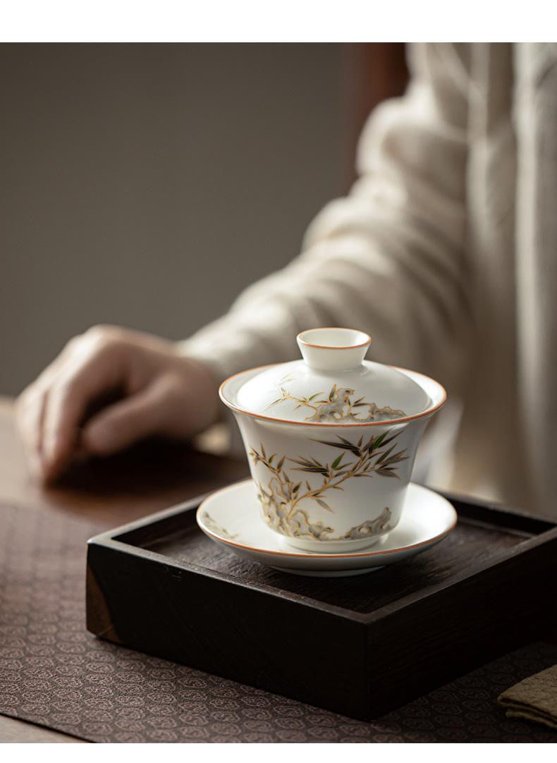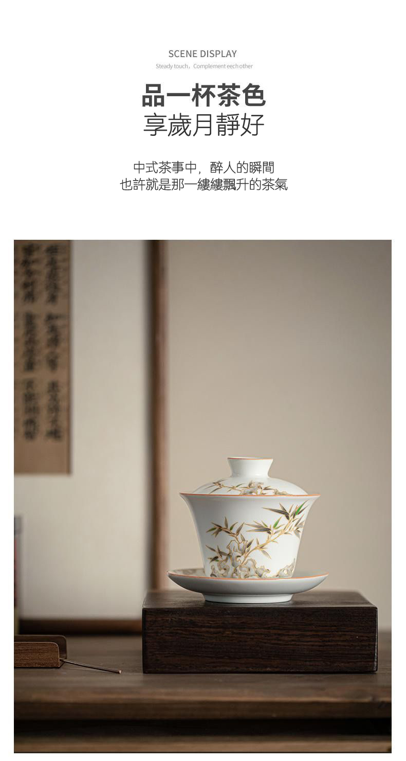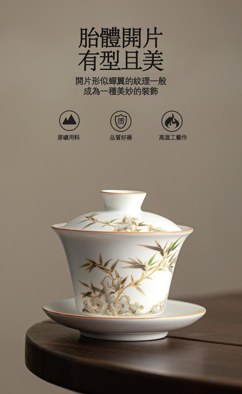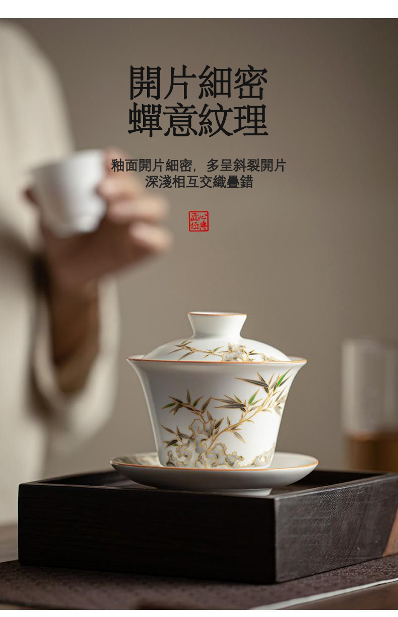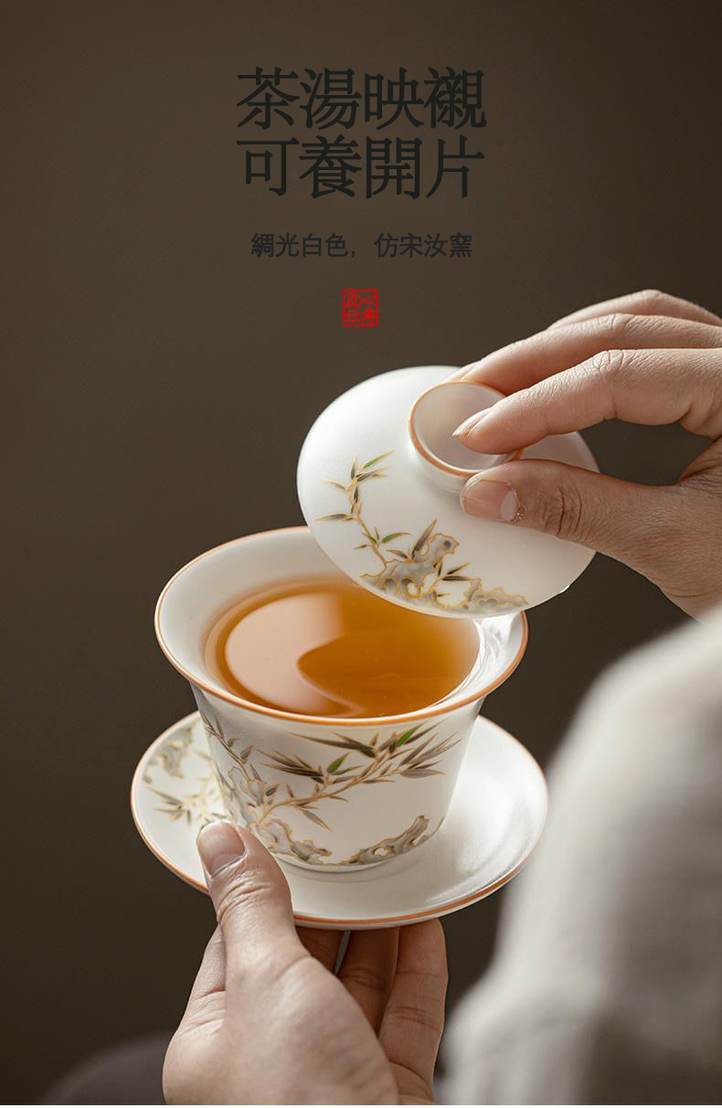 15分鐘前【汀和大福】白玉汝窯竹報平安三才蓋碗 - 白玉汝窯竹報平安三才蓋碗