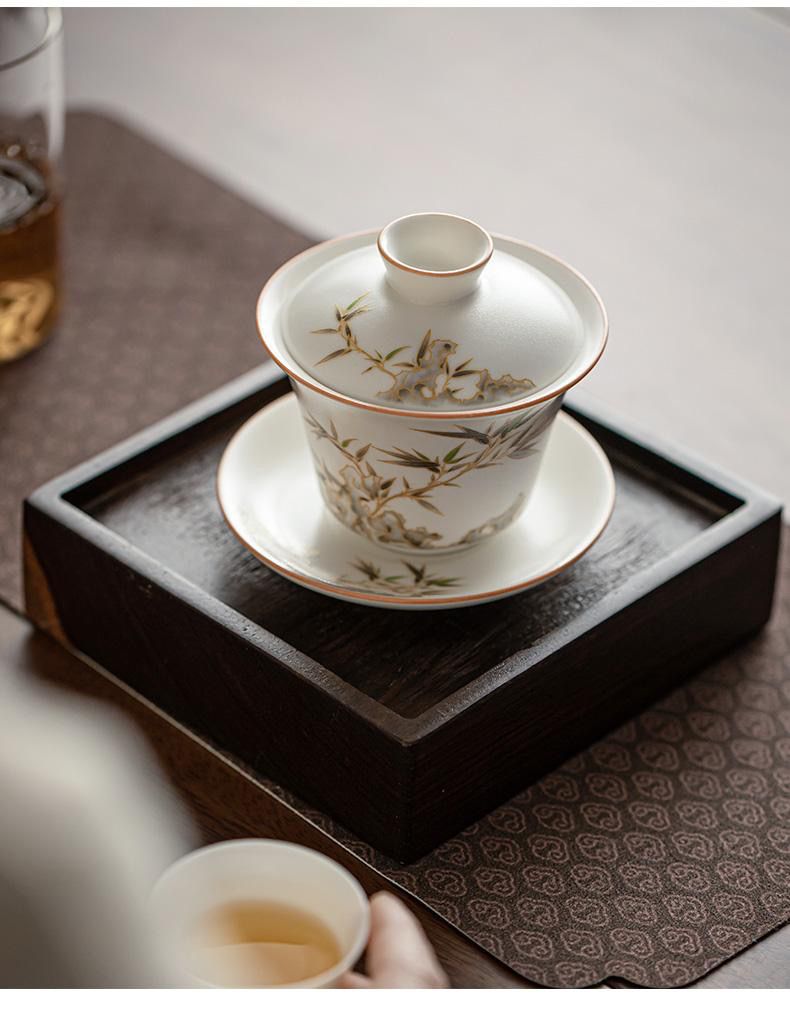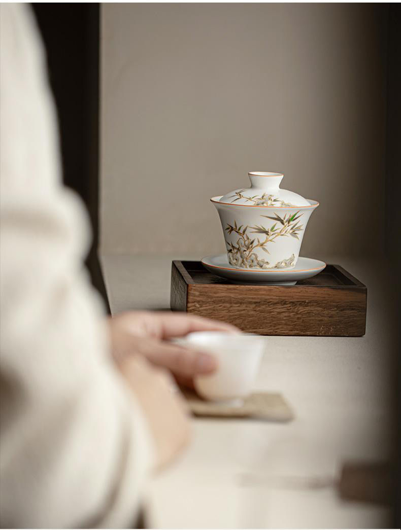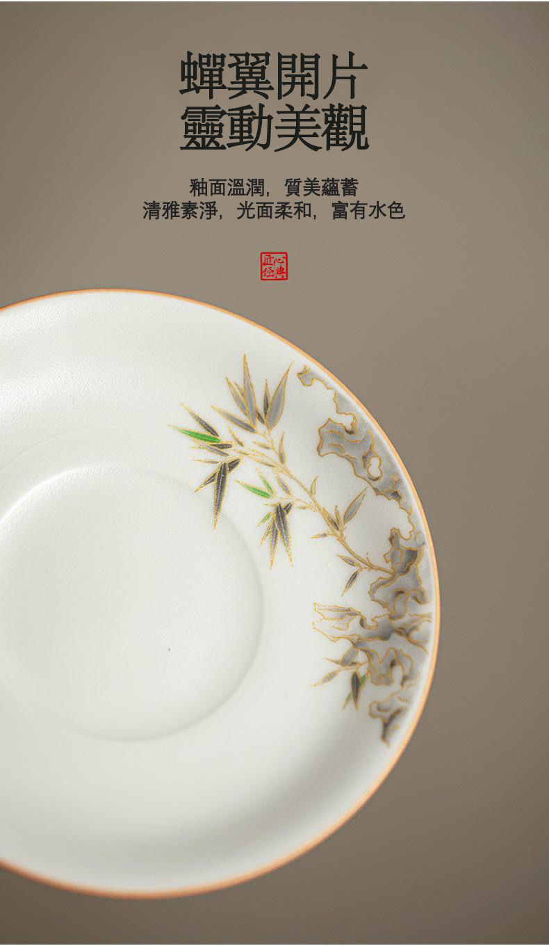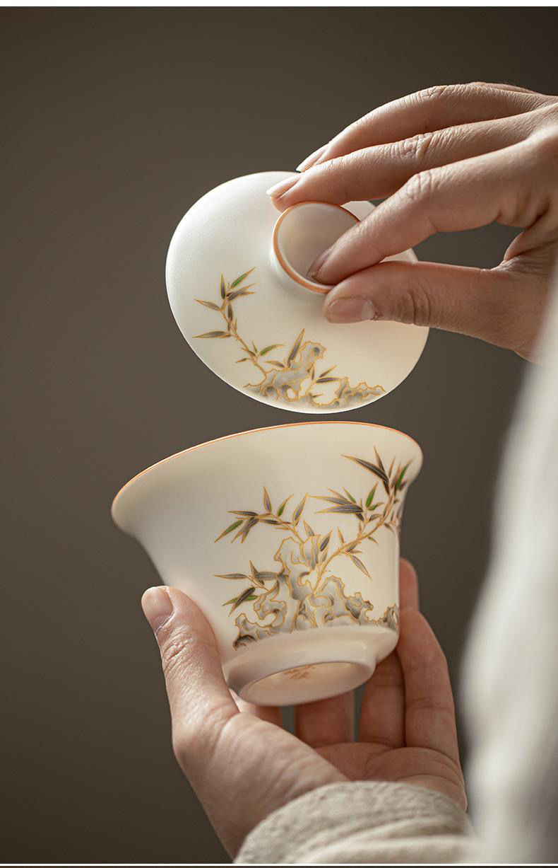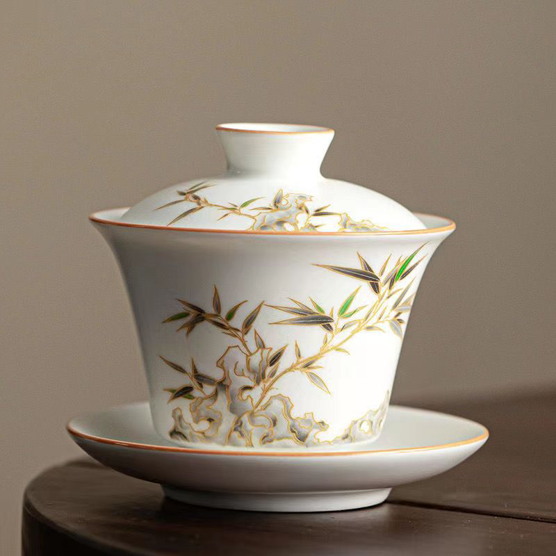 15分鐘前【汀和大福】白玉汝窯竹報平安三才蓋碗 - 白玉汝窯竹報平安三才蓋碗