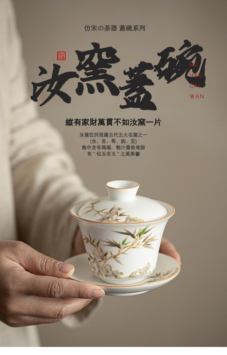 7分鐘前【汀和大福】白玉汝窯竹報平安三才蓋碗 - 白玉汝窯竹報平安三才蓋碗