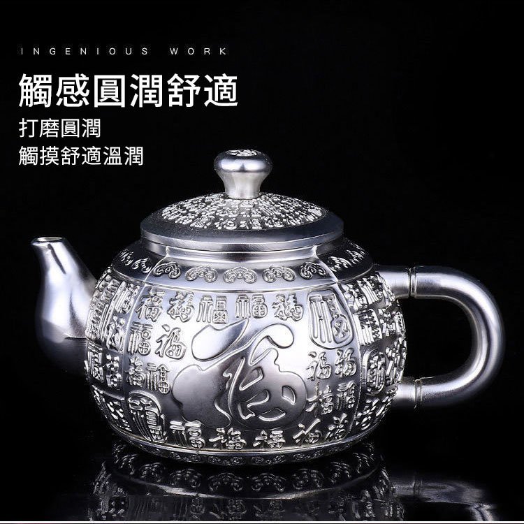 4.銀壺制作工藝精致,銀匠大師純手工打造,圖案雕刻形象生動,融入文化寓意,極具收藏價值。